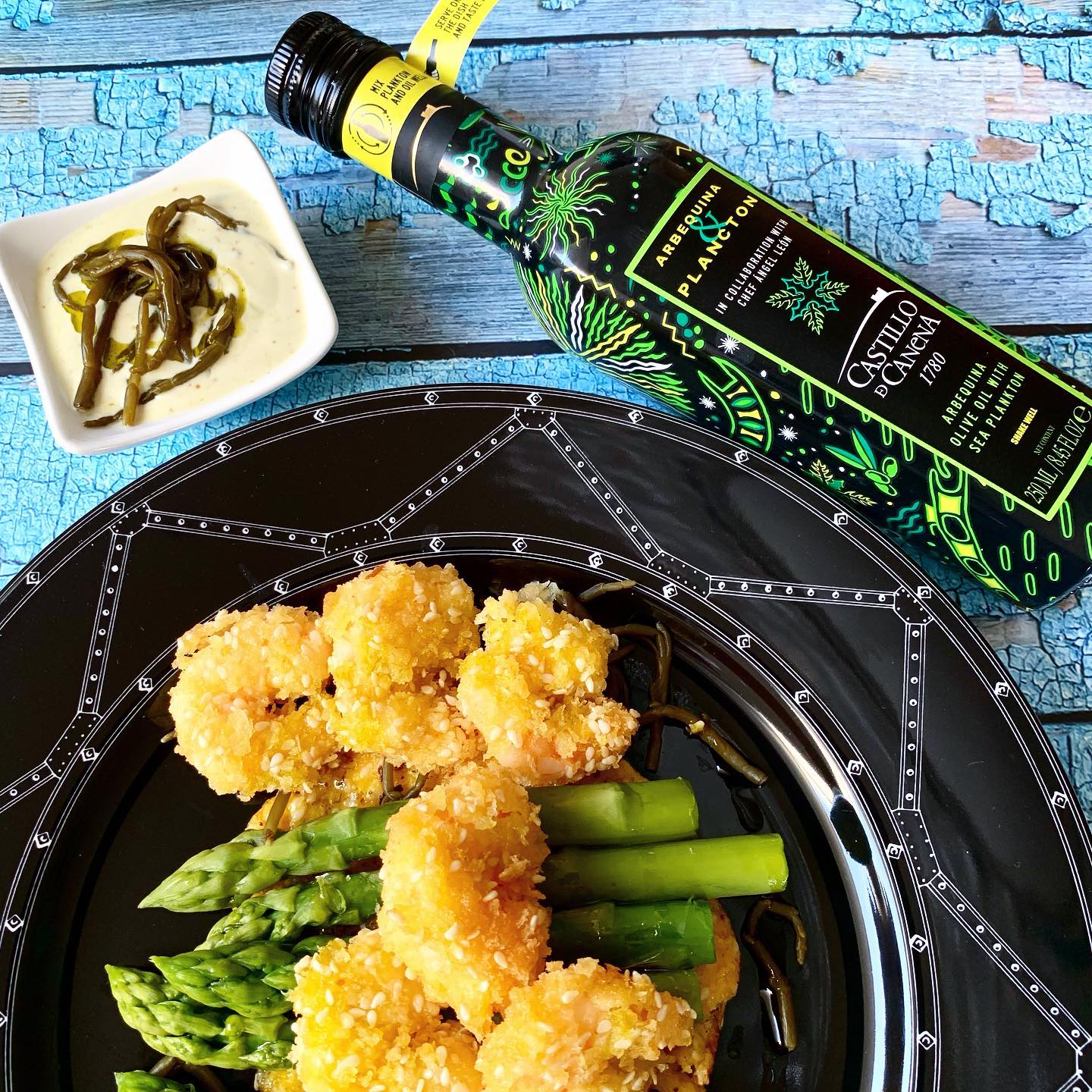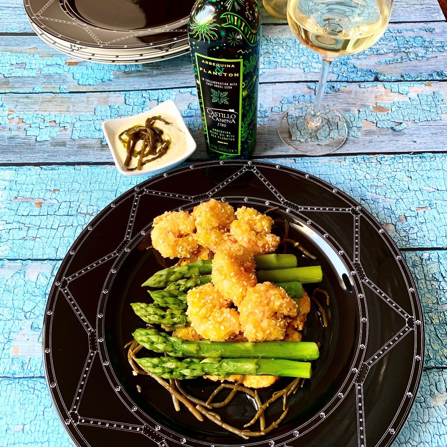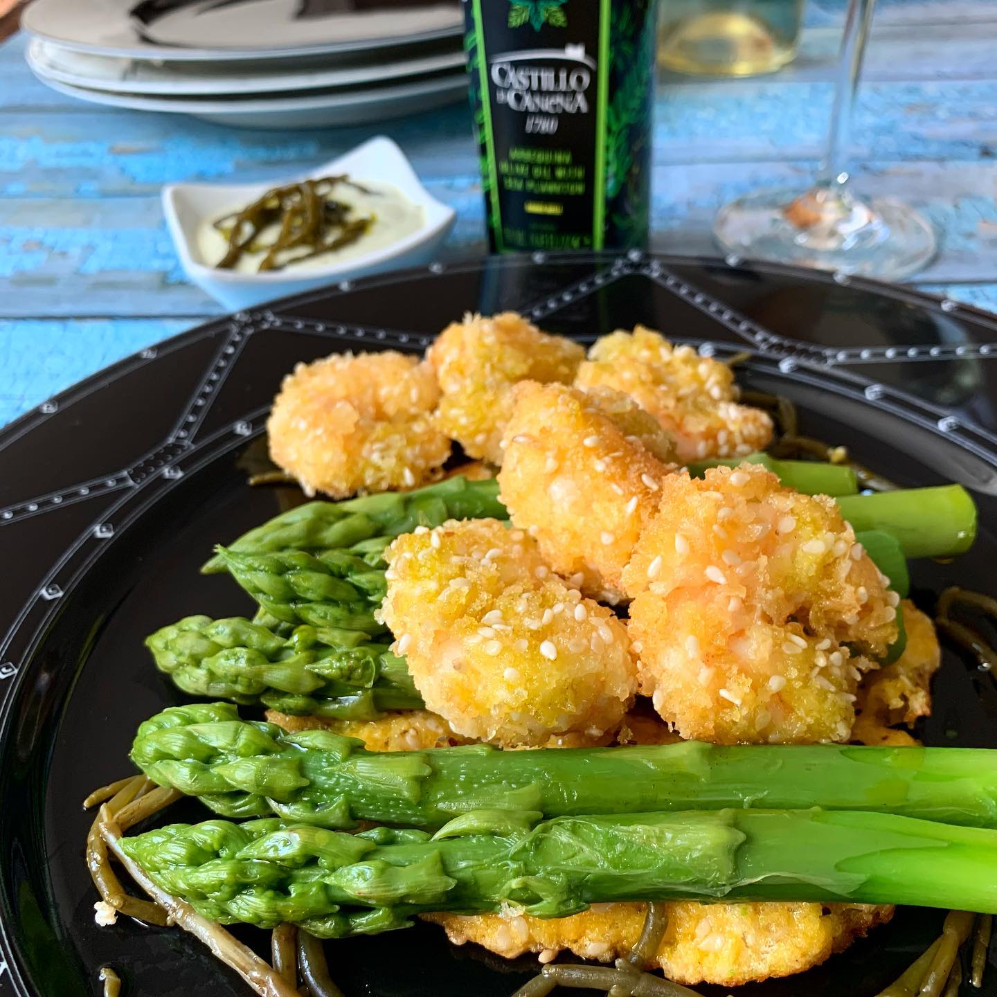 PANIERTE GARNELEN MIT GRÜNEM SPARGEL