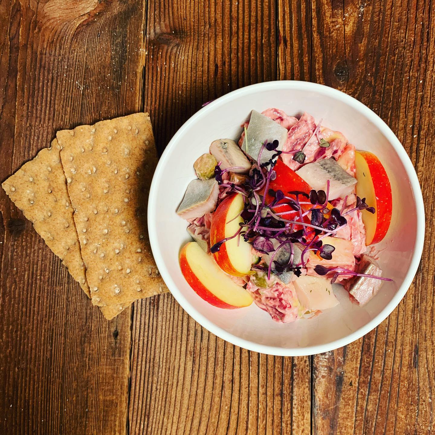 Ich hab mir einen Herings-Salat mit Rote Bete gemacht. Dazu brauchte es: Heringsfilets, Gewürzgurken (aus dem Glas), Rote Bete (aus dem Glas), einen kleinen säuerlichen Apfel, 1/2 Avocado, 1/2 rote Zwiebel, Saft 1/2 Zitrone, Kresse, Meersalz, Crème double, Sahnemeerrettich. Der Schnibbelaufwand lohnt sich - versprochen!
