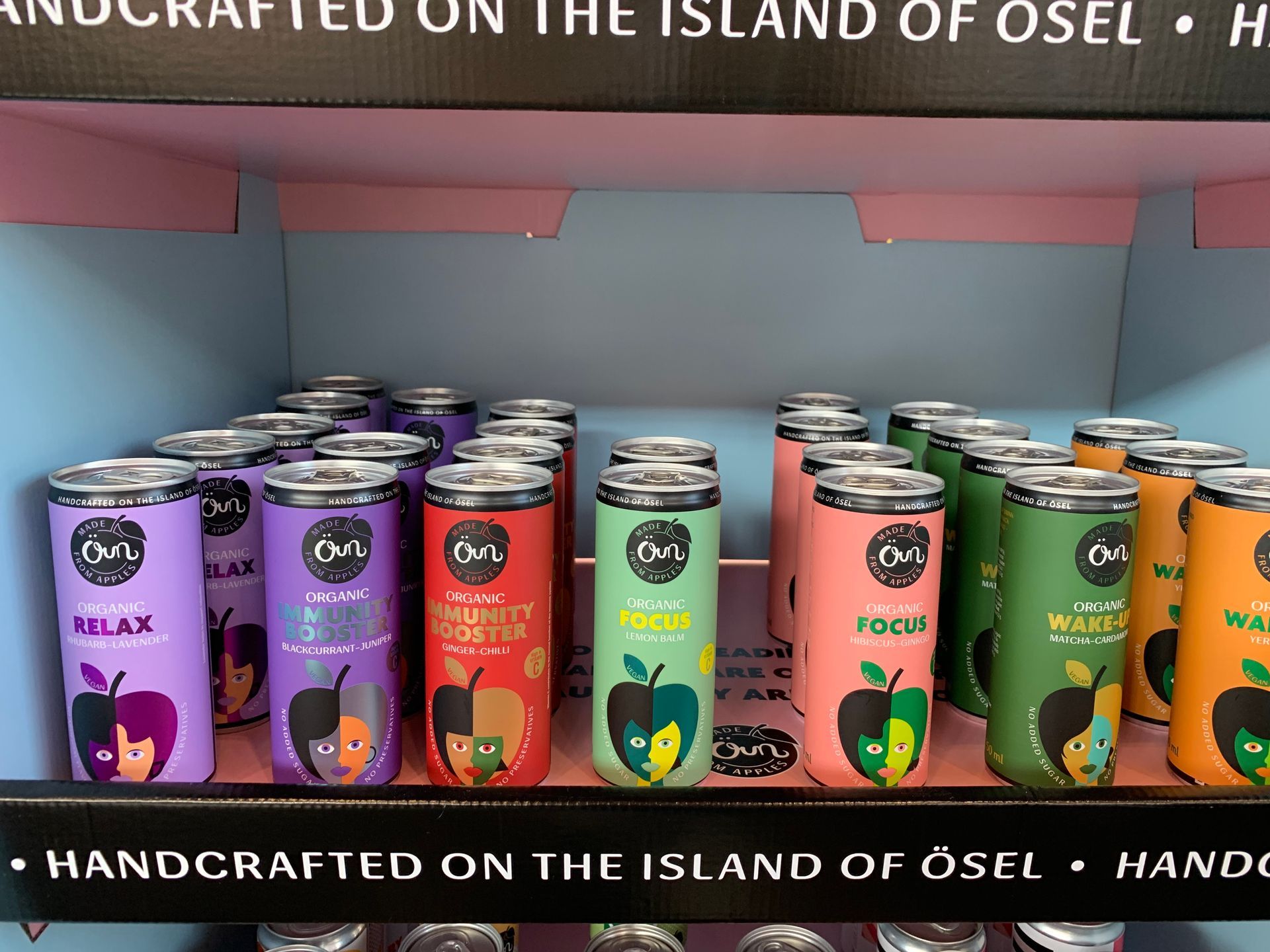 Aus diesem Grund dürfen auch die „Functional Organic Drinks“ nicht fehlen! Superfoods wie Ingwer, Chili, Kardamom und Cassis werden mit Yerba Mate, Matcha und natürlichem Koffein (Guarana) anregend kombiniert. Insgesamt sind 7 Sorten in hübschen Dosen erhältlich. Neben Yerba Mata, Matcha-Kardamom, Ingwer-Chili, Cassis-Wacholder, Hibuskus-Ginko und Zitronenmelisse hat es mir vor allem der Rhabarber-Lavendel-Relaxe-Drink angetan. Er wurde beim Wettbewerb „Best Estonian Food“ im April mit dem Label „ bestes Getränk eines kleinen westestländischen Unternehmens“ ausgezeichnet.