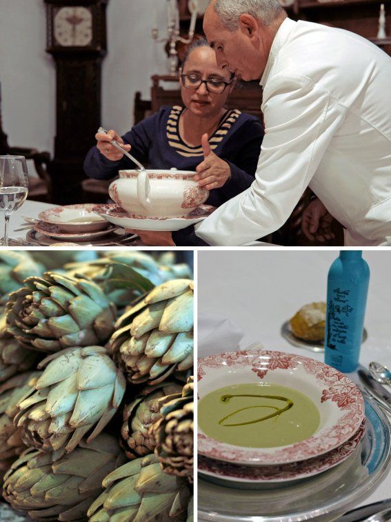 Küchenchef Manuel nimmt uns freundlich in Empfang und begleitet uns zu unseren Plätzen. Das Abendessen beginnt mit einer wunderbar cremigen Artischockensuppe. Wir konnten Manuel und Esther in der Küche bereits bei der Zubereitung über die Schulter schauen und freuen uns jetzt darauf, die Suppe zu probieren.