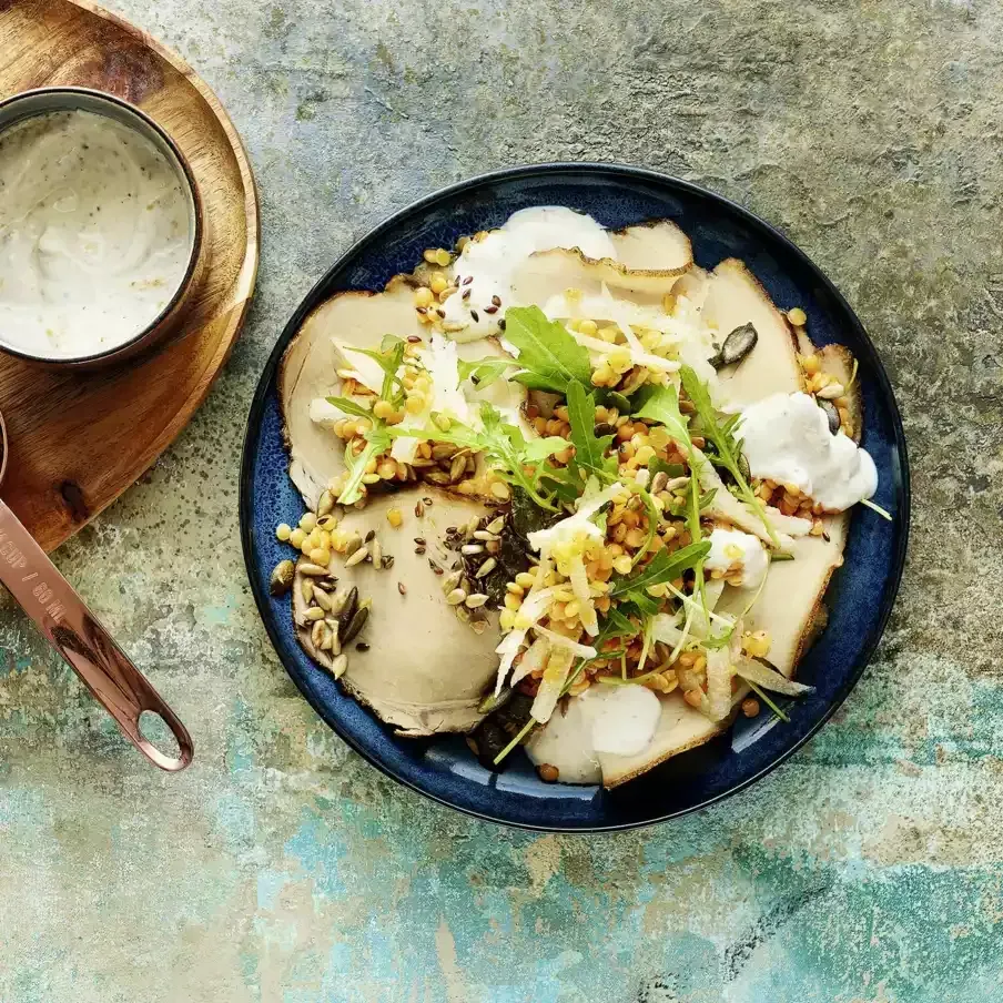 Am besten schmeckt ein Kohlkopf geröstet. Wird er vorher mit Harissa mariniert, verleiht ihm das eine würzig-aromatische Note. Zusammen mit einem cremigen Hummus aus roten Linsen kommt eine leckere Mahlzeit auf den Tisch.