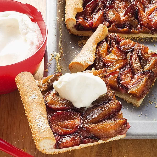 Vom Blech, mit oder ohne Streusel, vegan mit Chai und Kokosflocken oder Low Carb mit Mandeln – Pflaumen- bzw. Zwetschgenkuchen sind unter den Top five der beliebtesten Herbstkuchen!