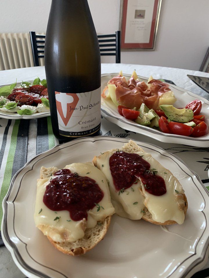 Aromatischer Taleggio, der sich wunderbar gratinieren lässt, geröstetes Weißbrot, Prosciutto di Parma und eine selbst gemachte Himbeer-Senf-Sauce – mehr braucht es nicht, um glücklich zu sein.