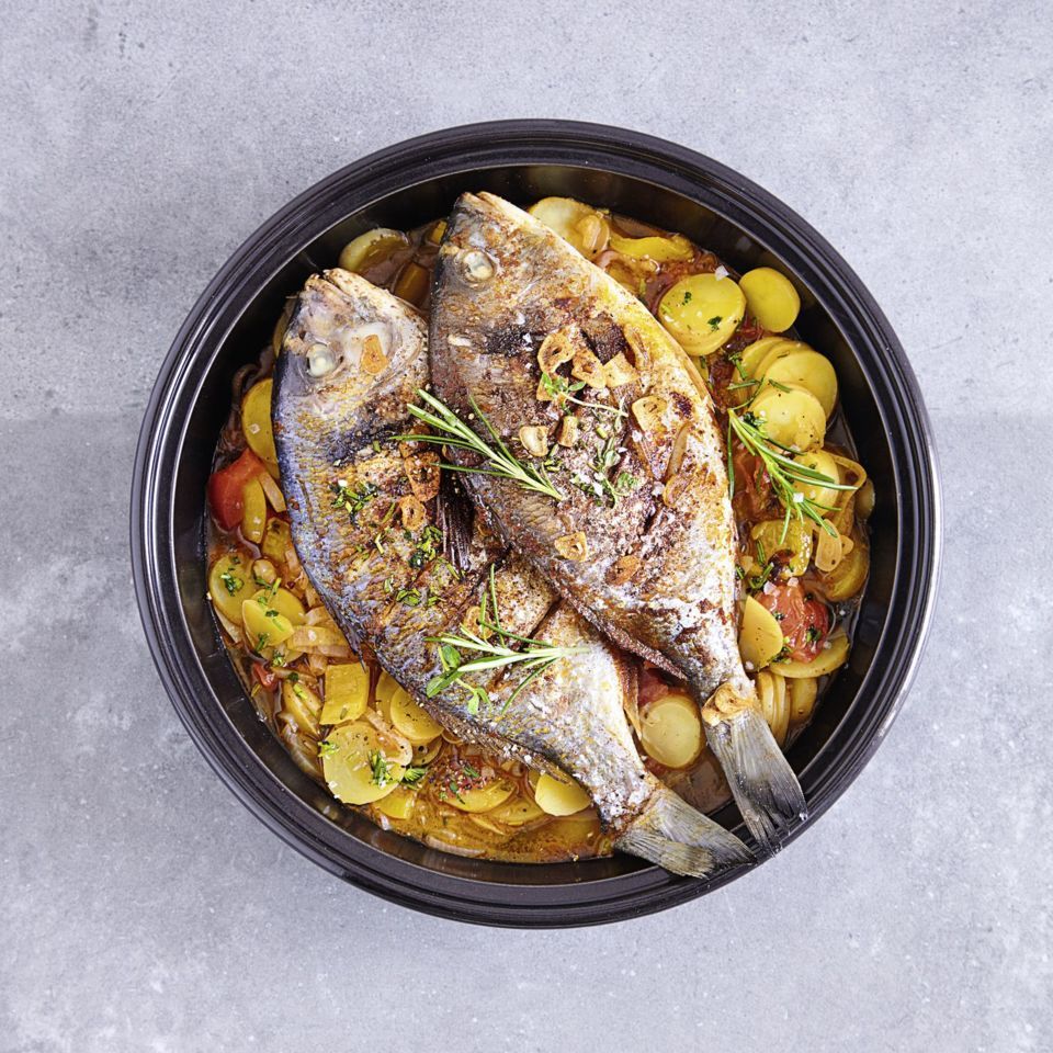 Die hübsch bemalten Tonkrüge mit den bunten Fischmotiven, sorgen für charmanten mediterranen Flair auf dem Tisch und das Olivenöl darin in den Gerichten für einen wunderbaren Geschmack.
