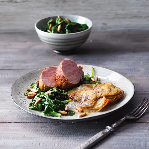 Wer liebt es nicht: Spinat, Spiegeleier und Pellkartoffeln? Ein in Deutschland traditionelles Gericht mit dem Blattgemüse. Dazu den jungen Spinat kalt abbrausen und verlesen. In einer Pfanne eine Schalotte und etwas Knoblauch in Olivenöl anschwitzen, dann den Spinat dazugeben. Unter Rühren fällt dieser schön in sich zusammen, bei Bedarf etwas Wasser zugeben, mit Salz, Pfeffer und etwas frisch geriebener Muskatnuss würzen.